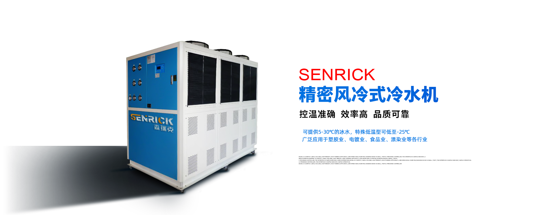 工業冷水機是一種通過蒸汽壓縮或吸收式循環(huán)達到制冷效果的機器。工業冷水機的工作原理是:先向機內水箱注入量的水,通過冷水機制冷系統將水冷卻,然后再由水泵將低溫冷卻水送入需冷卻的設備,冷水機冷卻水將熱量帶走后溫度升高再回流到水箱,從而達到冷卻的作用。冷卻水的溫度可根據要求自動調節(jié)。
